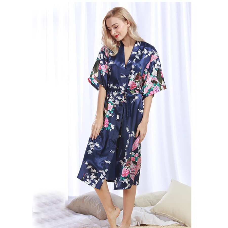 💍 Áo choàng kimono với Họa tiết chim công sinh động, bắt mắt