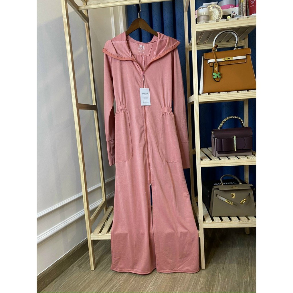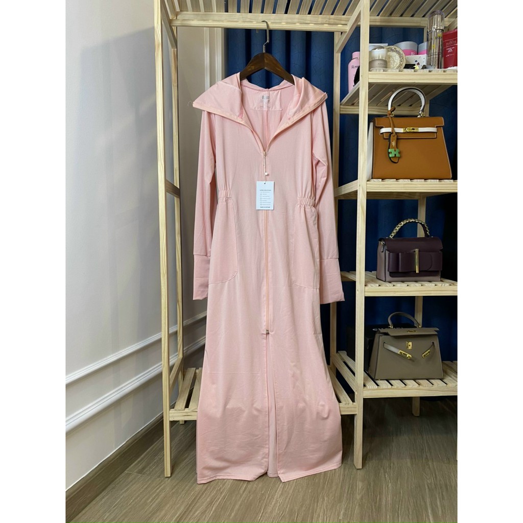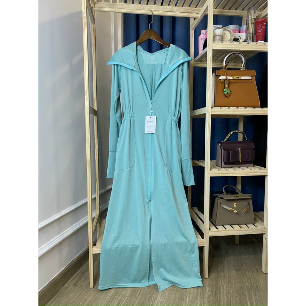- Áo có phần thân dài, 2 in 1 kết hợp cả áo nắng và váy chống nắng trong cùng một sản phẩm.