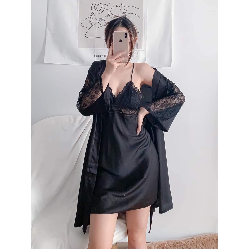 Áo choàng ngủ lụa satin cao cấp Áo choàng mặc nhà gợi cảm quyến rũ (Không kèm váy)