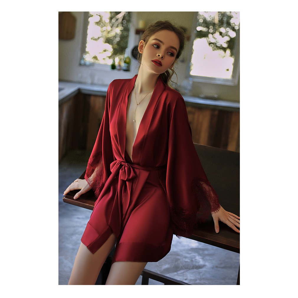 Giới thiệu Áo choàng ngủ lụa satin cao cấp Áo choàng mặc nhà gợi cảm quyến rũ (Không kèm váy)