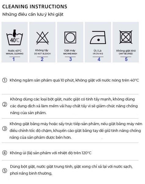 Sản phẩm được Viện dệt may Việt Nam kiểm định đạt chỉ số UPF 50+ (chỉ số chống tia UV từ 98%) và Intertex Japan.