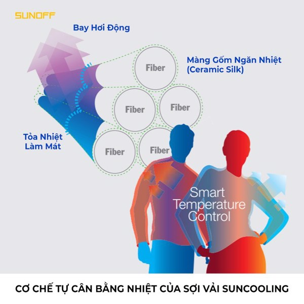 DO ĐÓ: SUNOFF sử dụng công nghệ ..IQ..Công nghệ xử lý LÀM MÁT ĐỘNG cho quần áo đầu tiên trên thế giới + Đồng thời kết hợp công nghệ Nano Wash để xử lý quá trình dệt nhuộm tạo ra dòng vải: Poly Ceramic Silk với các tính năng chuyên dụng chống nắng/ngăn tia UV vượt trội đầu tiên và hiện duy nhất tại Việt Nam: