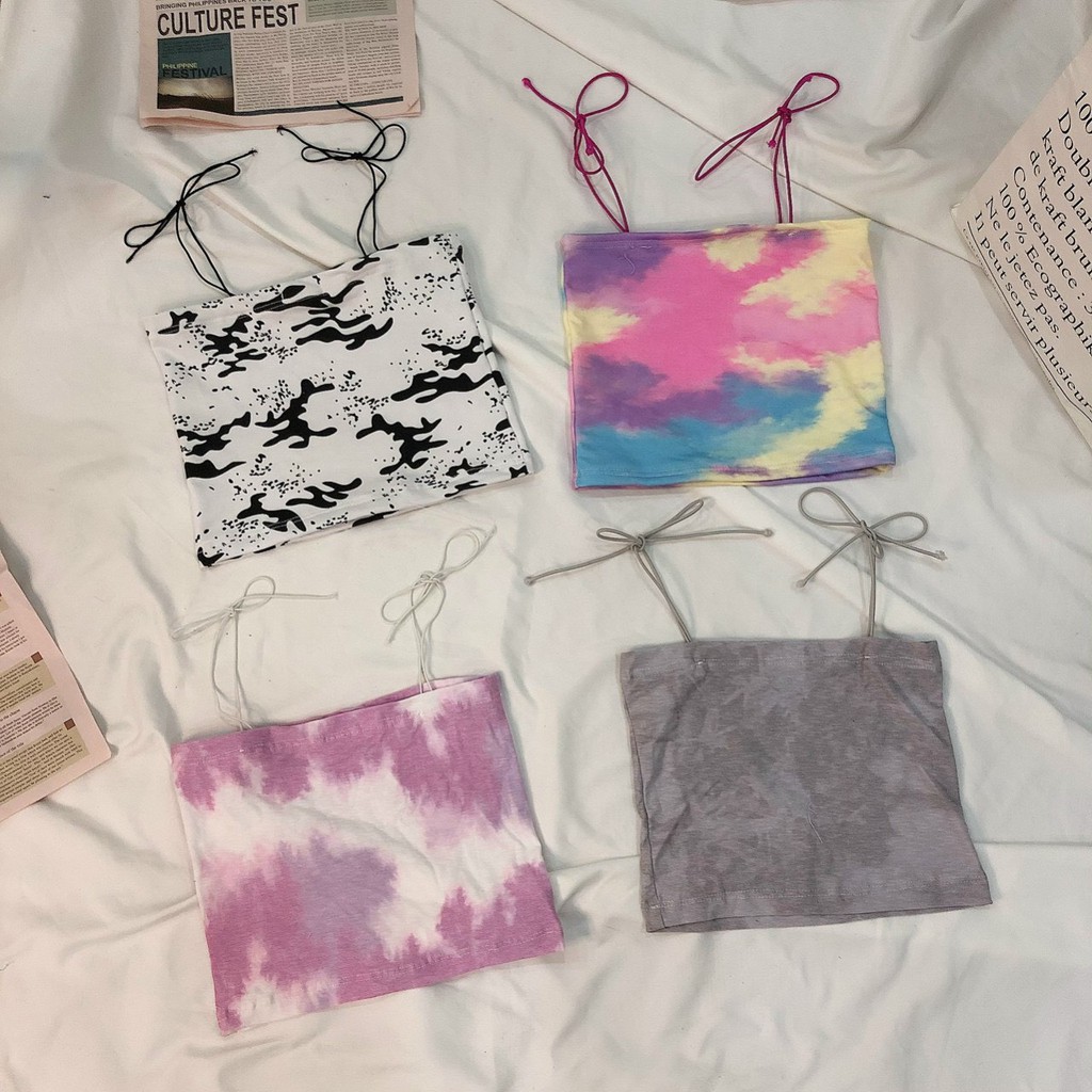 Áo croptop 2 dây màu loang cột nơ vai xinh
