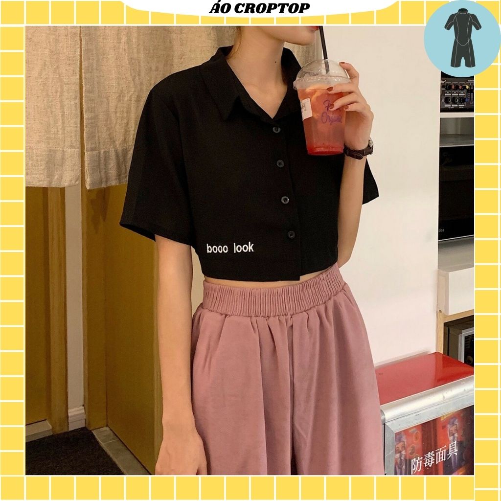 Giới thiệu Áo croptop cổ bẻ polo nữ tay lỡ , from rộng, freesize , thun cotton mềm mịn