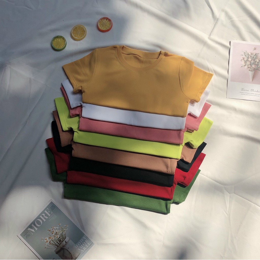 Áo croptop cổ tròn trơn ôm body cực xinh