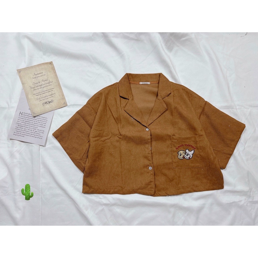 Giới thiệu áo croptop cổ vest chất tăm nhung thêu gấu p