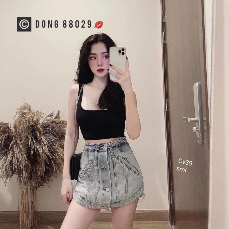 Thời Trang Nữ > Áo > Áo hai dây và ba lỗ || Áo croptop cổ vuông dây A5213