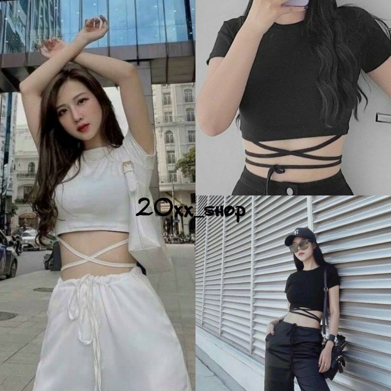 Áo croptop dây dài chéo bụng Tay Ngắn siêu hit⚡⚡