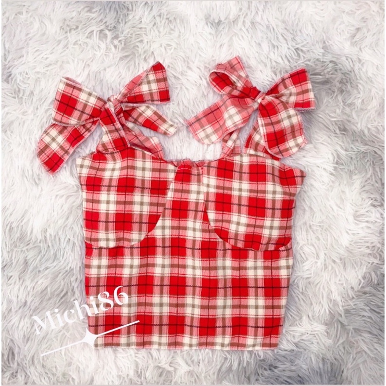 Giới thiệu Áo croptop hai dây kẻ caro nữ thắt nơ vai có lót ngực Michi, áo hai dây nữ Michi