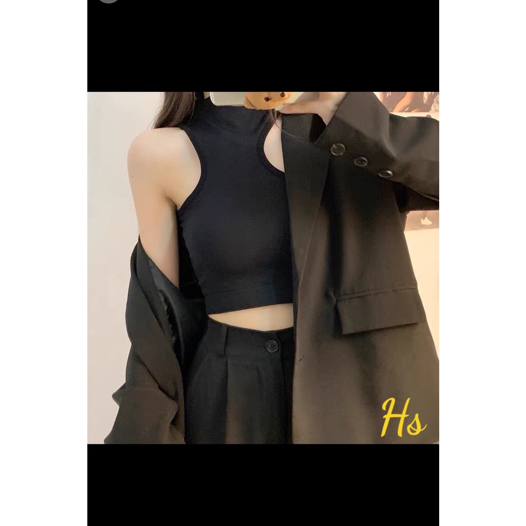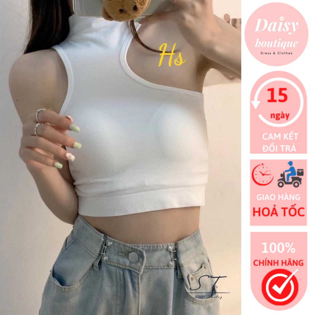 Áo Croptop Lệch Vai, Kiểu Dáng Độc Lạ, Cổ Cao 3 Phân Daisy Mã 961