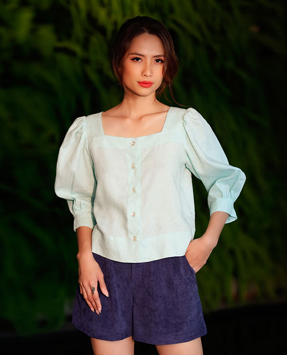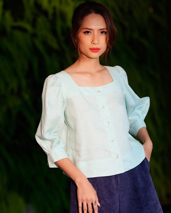 Áo Croptop Linen Aqua TOP132 Thời trang thiết kế Hity