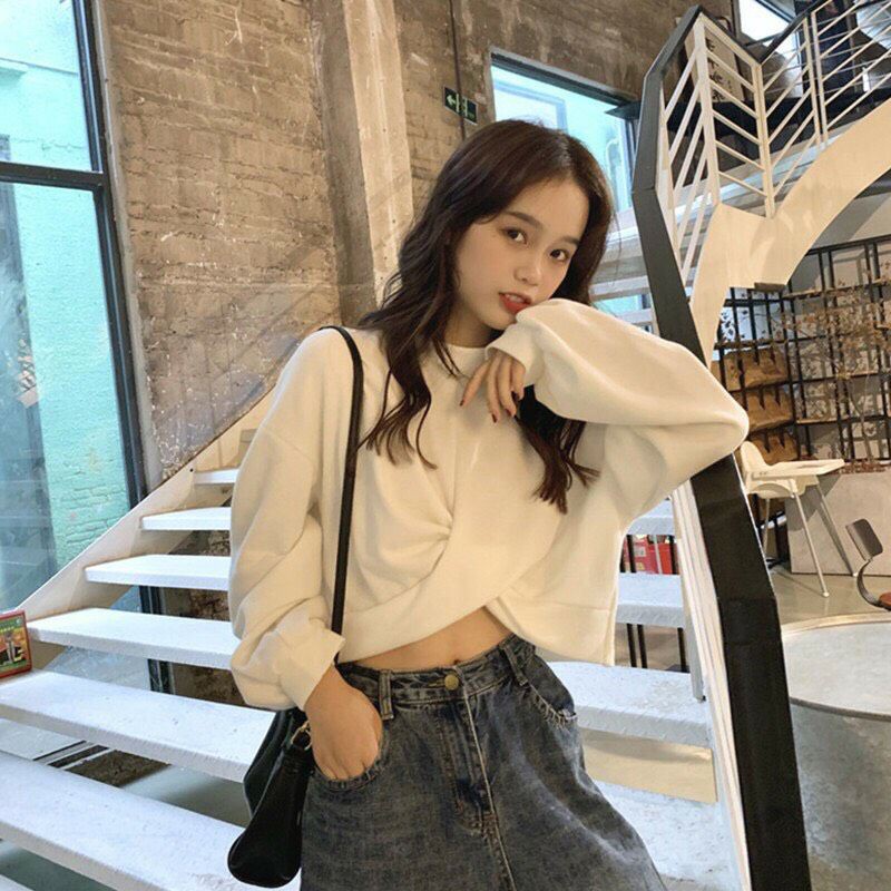 Thời Trang Nữ > Hoodie và Áo nỉ > Áo khoác nỉ || Áo Croptop Nỉ Xoắn Eo Dài Tay BASIC (Ảnh thật)