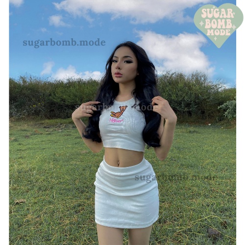 GỢI Ý PHỐI ĐỒ : Áo croptop nữ sát nách ba lỗ không tay kiểu ôm body tank top vải thun gân hình gấu co giãn tốt sugarbomb.mode - Áo croptop nữ kiểu dáng basic thích hợp mặc đi chơi Tết, đi làm, hội họp bạn bè,