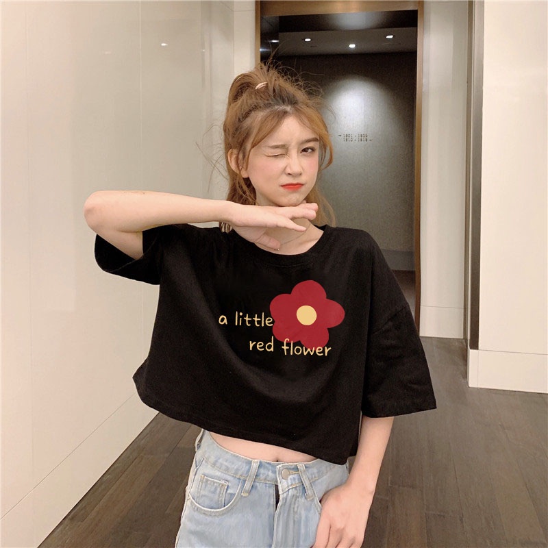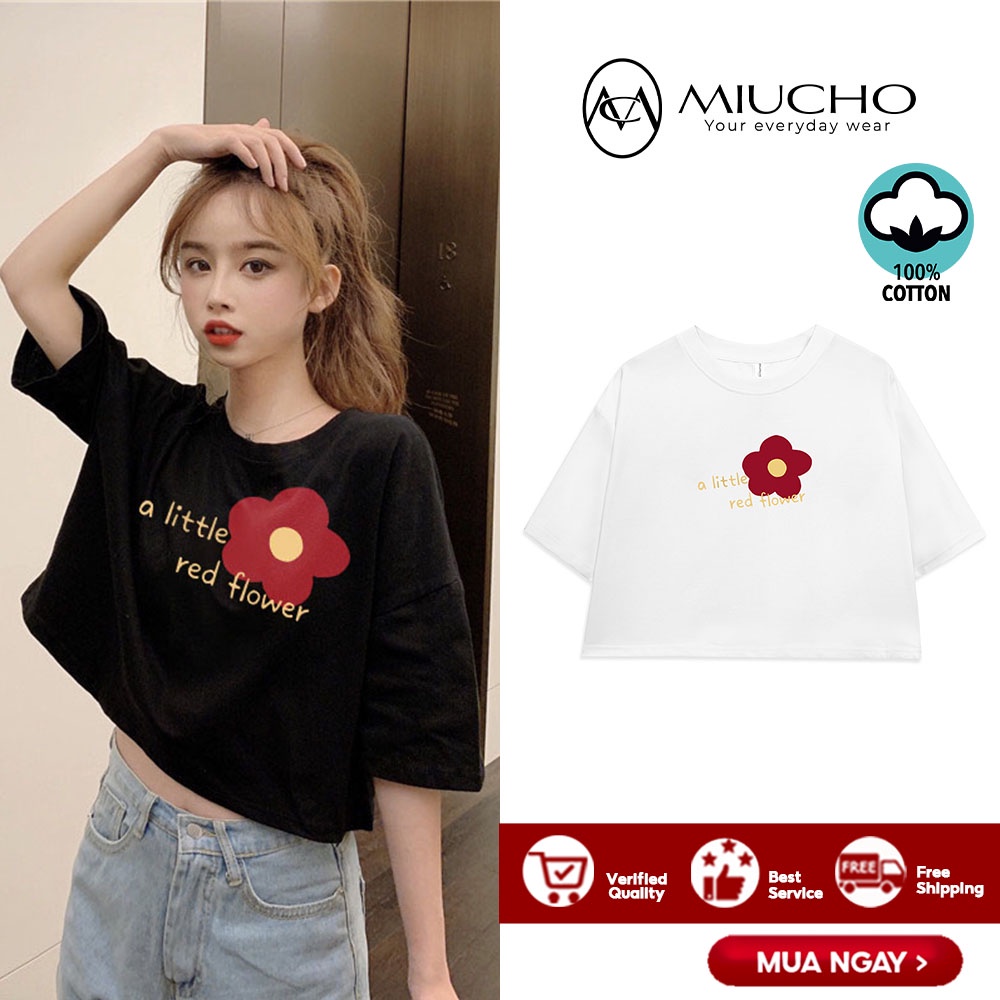 Giới thiệu Áo croptop nữ tay ngắn cổ tròn vải thun cotton kiểu hàn quốc CR063 Miucho in hoạ tiết