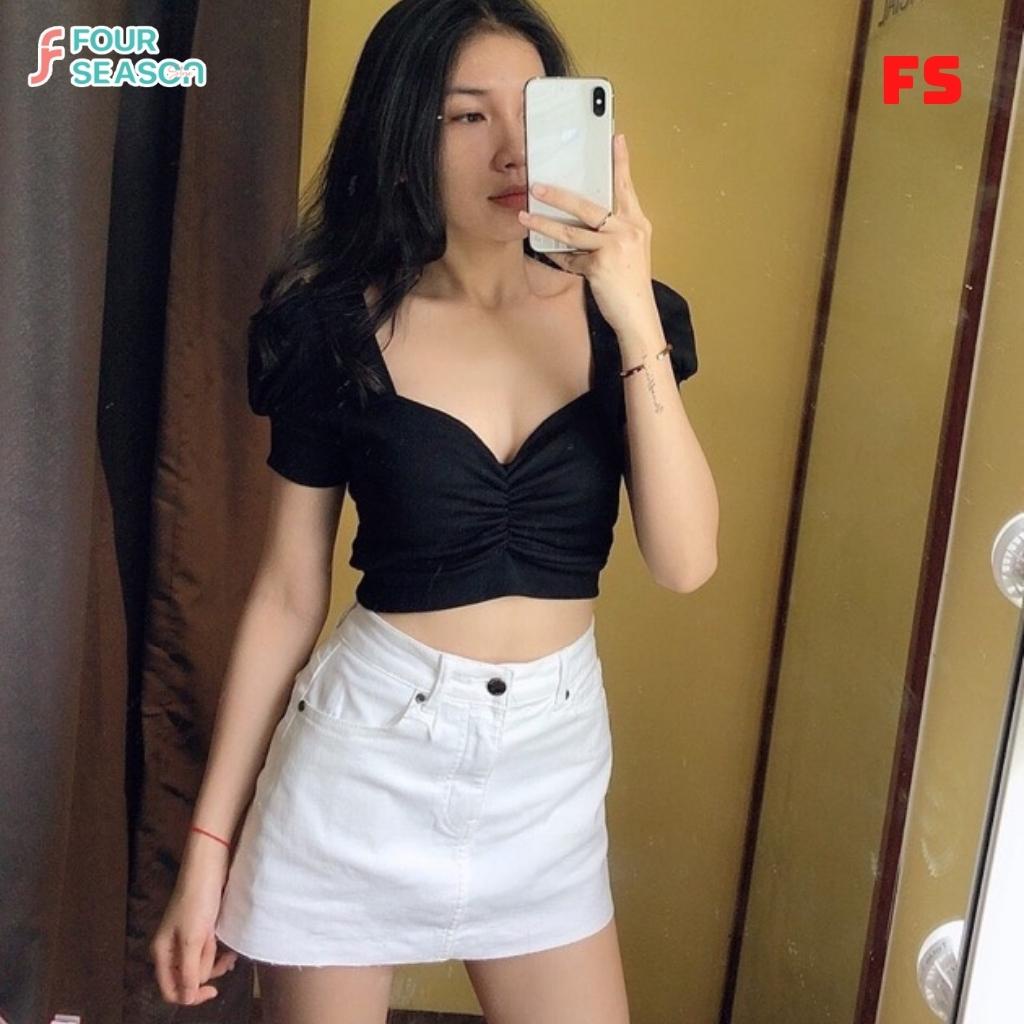 Giới thiệu Áo croptop nữ tay phồng cổ vuông ,nhún ngược chất vải tốt mịn màn chất lượng ACT05 4S