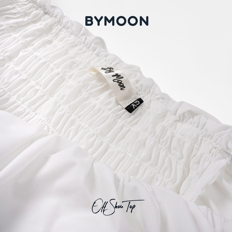 Giới thiệu Áo croptop trắng trễ vai tay bồng xếp tầng cách điệu tiểu thư chất thô hàn mát thiết kế bởi BYMOON A002.