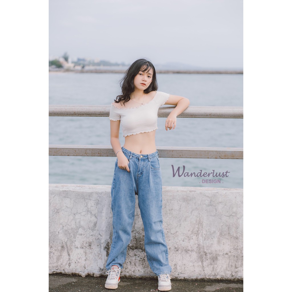 💋 Shoulder Top - Chiếc áo Croptop trễ vai sexy nhưng không kém phần nữ tính, ngọt ngào 2 màu Kem và Xanh Pastel cực ngọt | Chất thun gân co giãn tôn dáng tuyệt đối