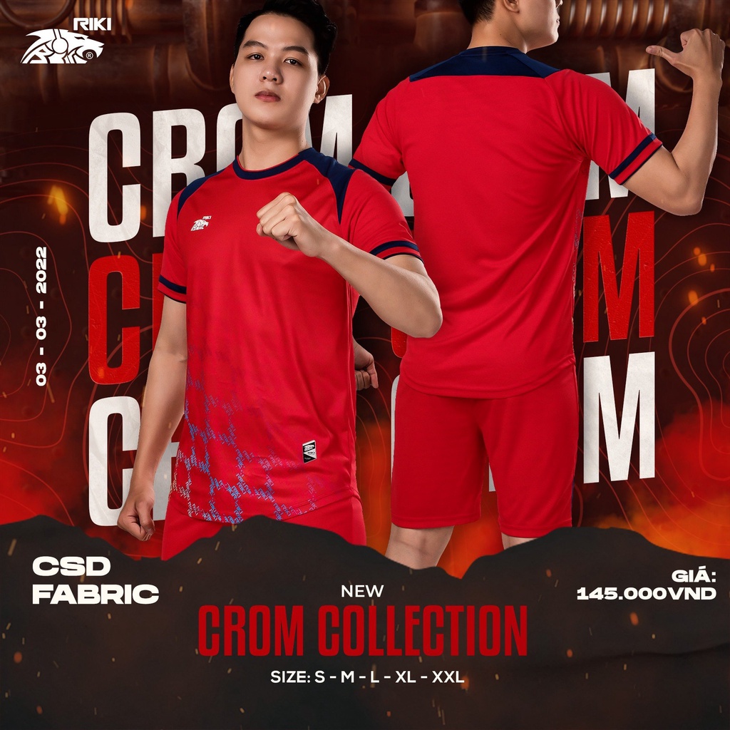 Giới thiệu Áo đá banh không logo Riki Crom màu đỏ CÓ IN tên số