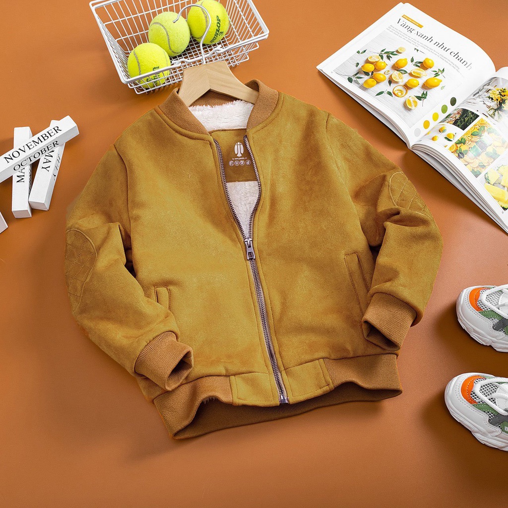 *Chất liệu: Áo khoác da lộn trẻ em bên ngoài chất da lộn dày dặn, sờ rít tay, giặt thoải mái không bong tróc như da trơn. Áo Khoác Da Lộn hàng có thể giặt máy.