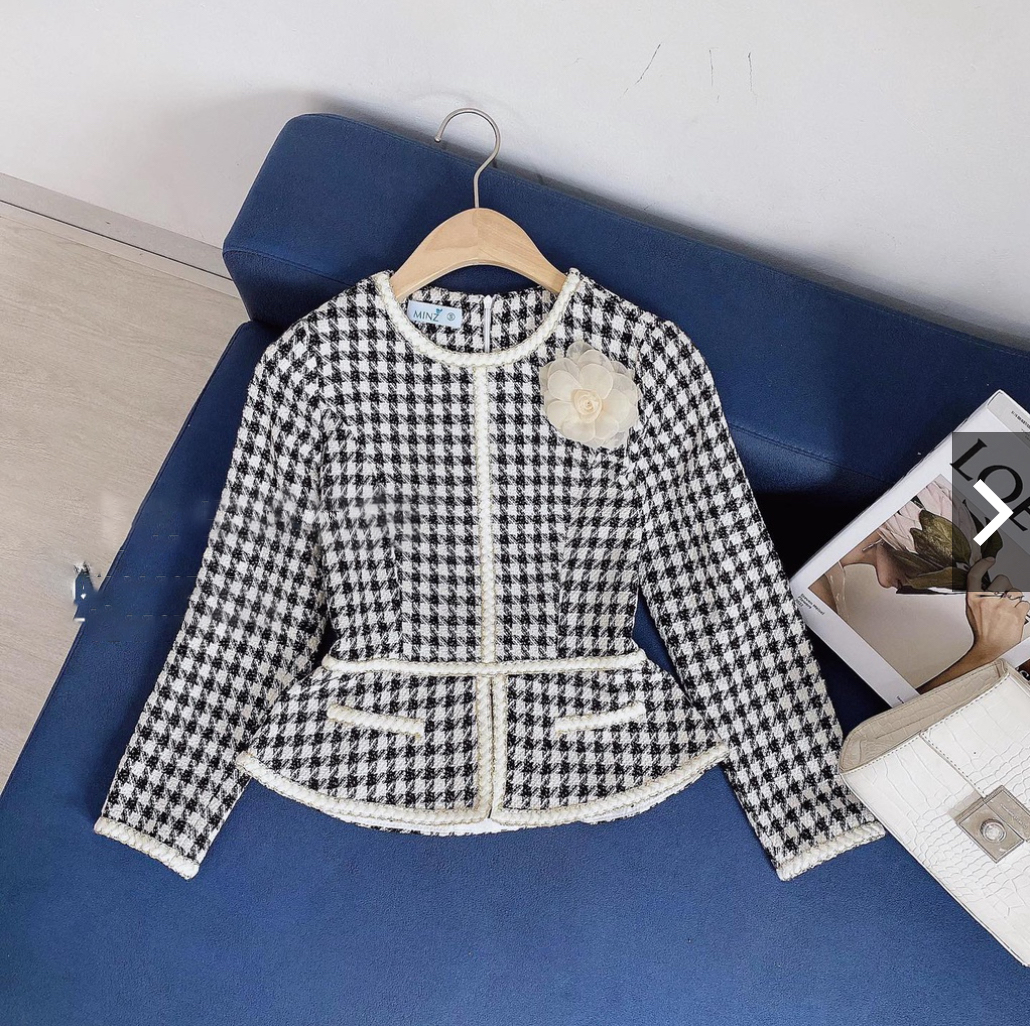 Hàng của Shop là hàng cao cấp, chất liệu dạ tweed dày dặn, 2 lớp, có lớp lót bên trong mặc không hề dặm ngứa, khó chịu. Vải được dệt xen kẽ giữa các sợi đen và trắng là các sợi kim tuyến cao cấp, khi mặc bắt sáng sẽ vô cùng sang, khác hẳn hàng loại rẻ tiền loại 2, loại 3, chỉ dệt có sợi đen và trắng thôi Khách nha.