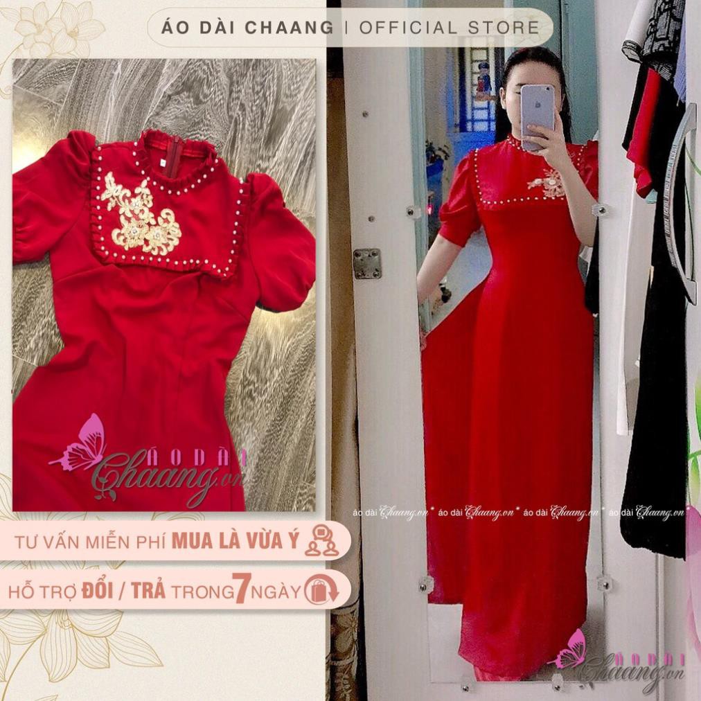 Giới thiệu Áo dài cách tân đỏ_Chaang_May sẵn áo dài tay bồng - cổ ngực xếp kiểu áo tiểu thư