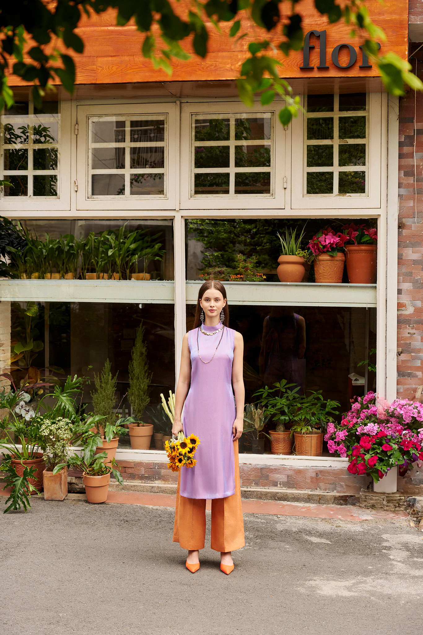 Áo dài cách tân Linh Lăng có thiết kế tà áo ngắn hơn so với áo dài truyền thống mang lại phong cách năng động, chuyển động cho người mặc. Phần tay áo được thiết kế sát nách, tạo vẻ đẹp trẻ trung phá cách.
