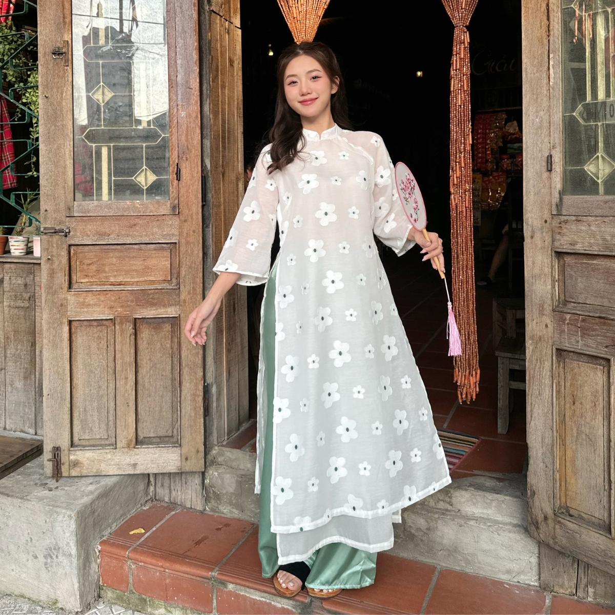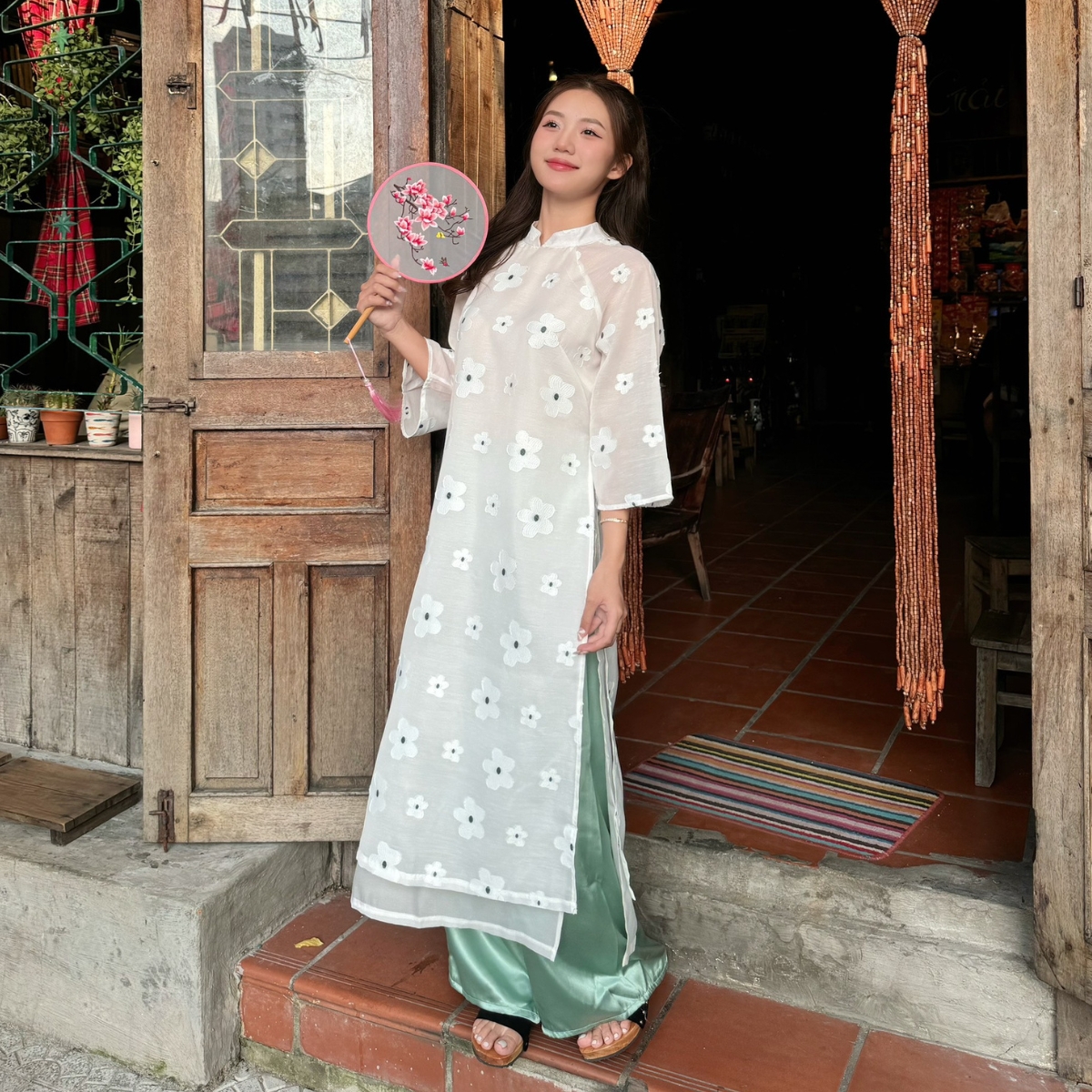 | Chất liệu | Vải Tơ Thêu Hoa |