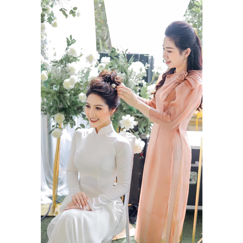 Giới thiệu Áo dài cô dâu lụa ngọc trai 2 tà đính kết