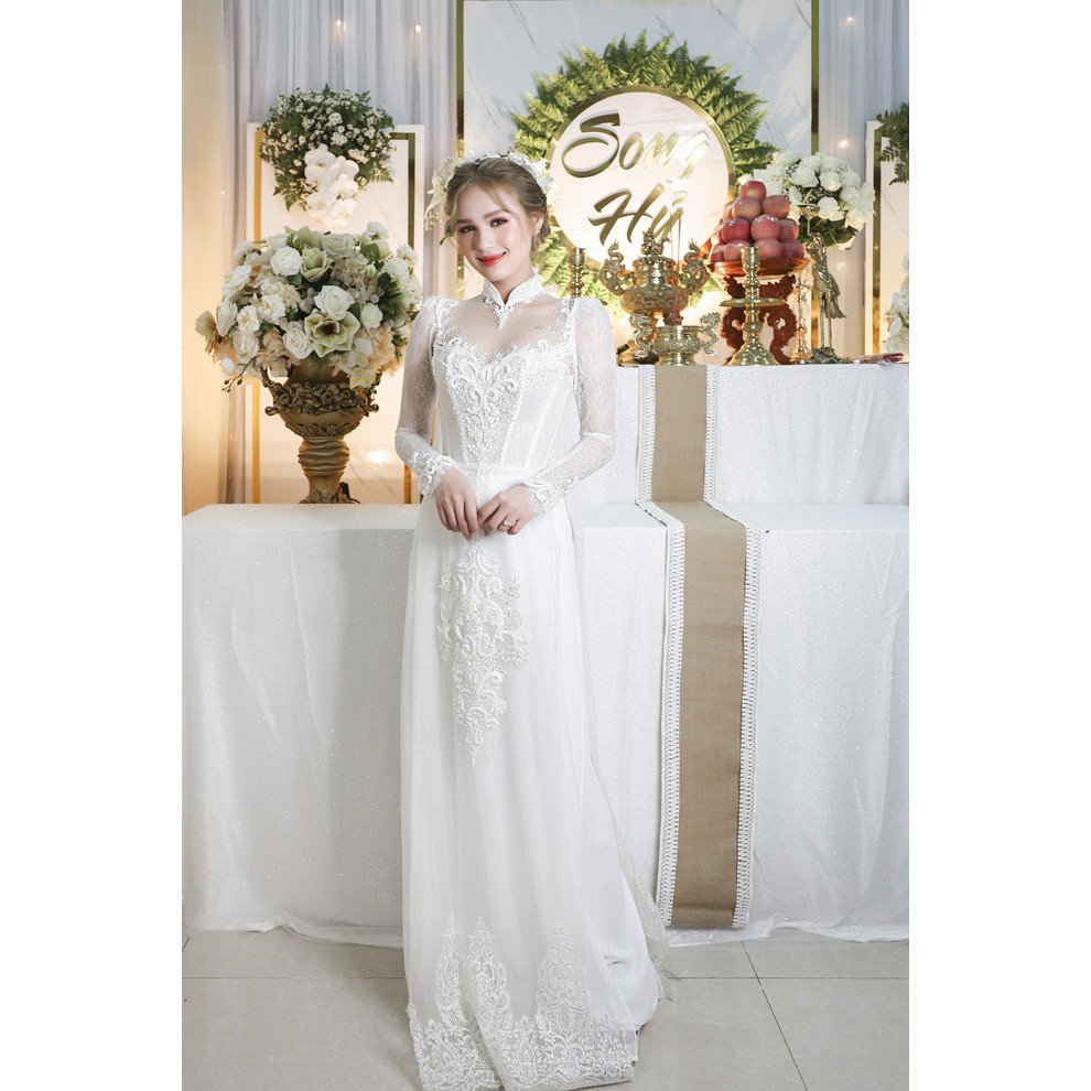 Giới thiệu Áo dài cưới_Chaang_May sẵn áo dài cô dâu màu trắng 6 tà, vải lụa ren mi cao cấp