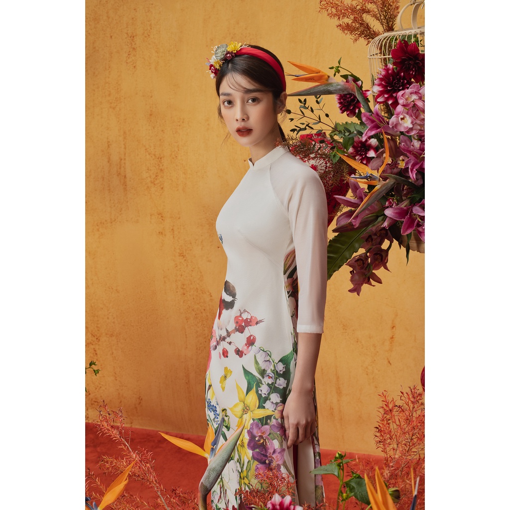 Giới thiệu Áo dài màu trắng kem, quần đỏ đô 1AD10309 ADORE DRESS