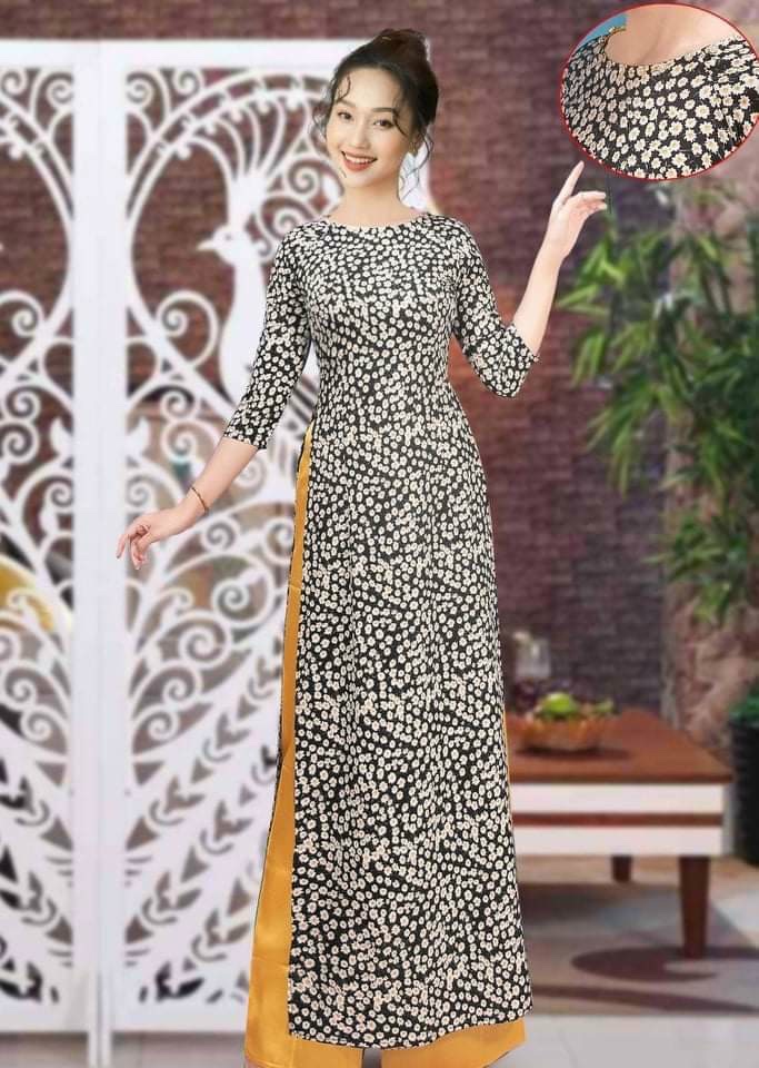Thiết kế Áo dài nữ họa tiết hoa trắng đen cao cấp phong cách đường may tỉ mỉ.