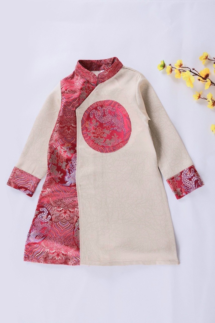 Áo dài cách tân phối gấm bé trai 2-10 tuổi áo dài thiết kế cao cấp Áo dài Phượng Vũ phối gấm cực đẹp Nhìn áo dài rộn ràng không khí tết ết sum Vầy là đầy