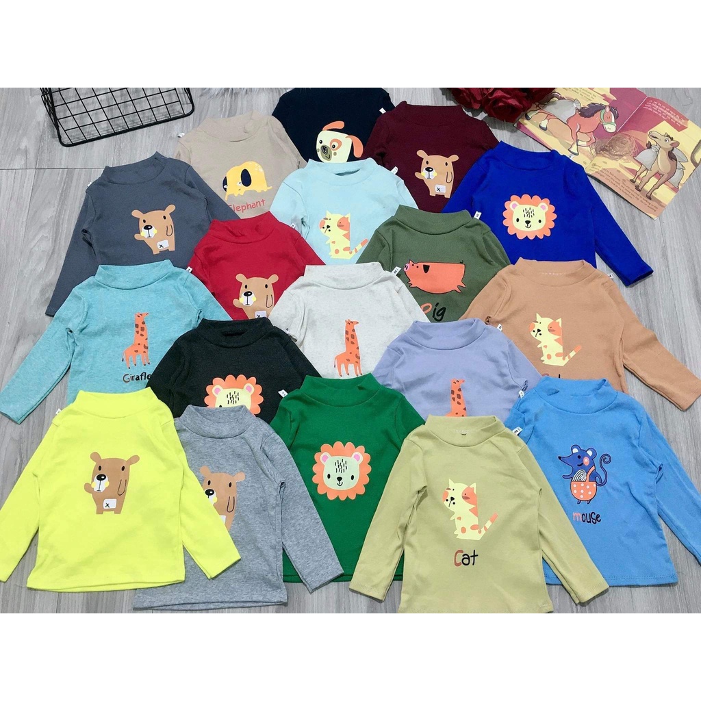 Giới thiệu Áo dài tay cổ 3 phân hình thú ngộ nghĩnh cho bé trai/ gái 7-30kg