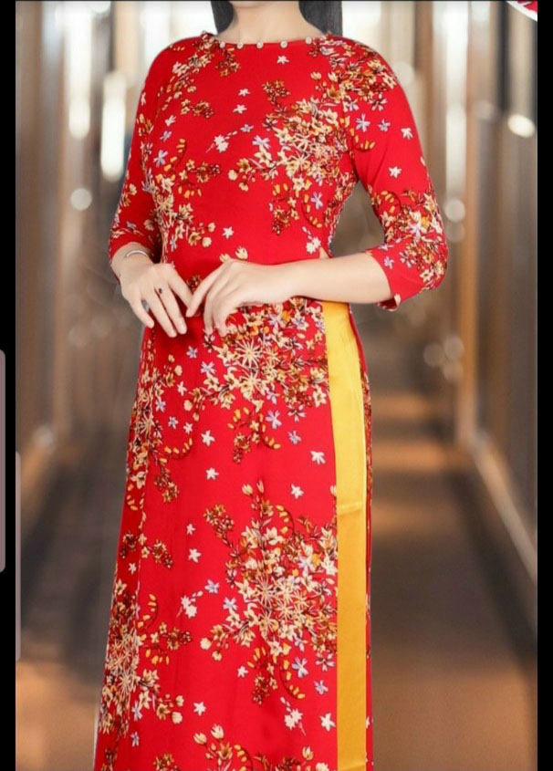 Thiết kế Áo dài truyền thống họa tiết hoa cúc cao cấp phong cách đường may tỉ mỉ.