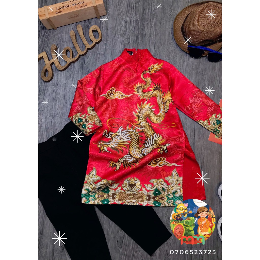 1. Thông tin sản phẩm - Xuất xưởng Hồ Chí Minh - Sản phẩm gồm: 1 áo dài (KHÔNG kèm quần) - Chất liệu: Gấm Thái Tuấn CAO CÂP loại 1, dệt hoa văn nổi ,vải Mềm, mát ---> Tinh hoa Đất Việt trong tà áo dài truyền thống. Du Xuân lên hình đẹp ngất ngây ---> Lịch lãm và dễ thương cho chàng yêu nhà mình đón Tết - Màu: xanh, đỏ, vàng - Size 2-13, bé 11-35kg