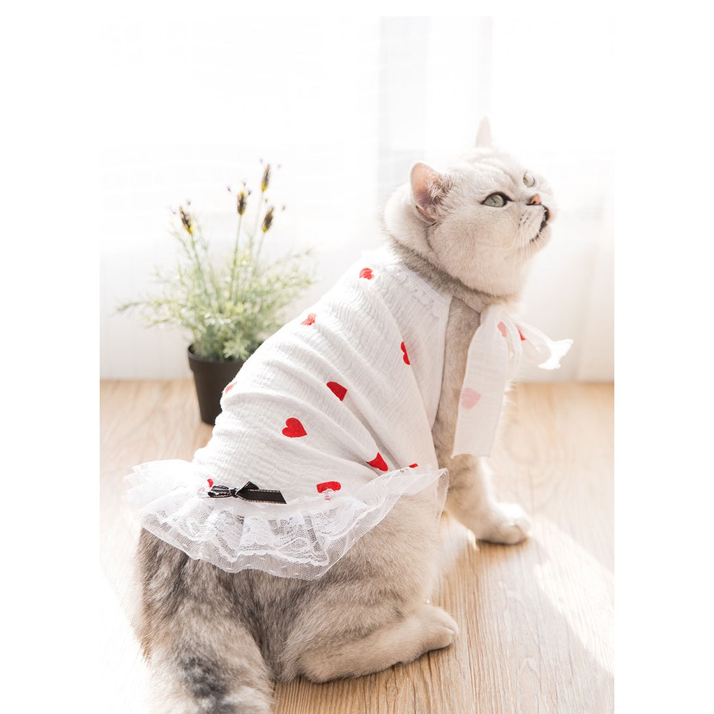 Chăm Sóc Thú Cưng > Quần áo & phụ kiện > Quần áo thú cưng || áo đầm ren xòe trái tim dành cho chó mèo