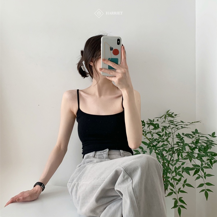 Giới thiệu [Mã BMBAU50 giảm 7% đơn 99K] Áo hai dây cotton mềm mại ôm sát xinh xắn màu đen Harriet