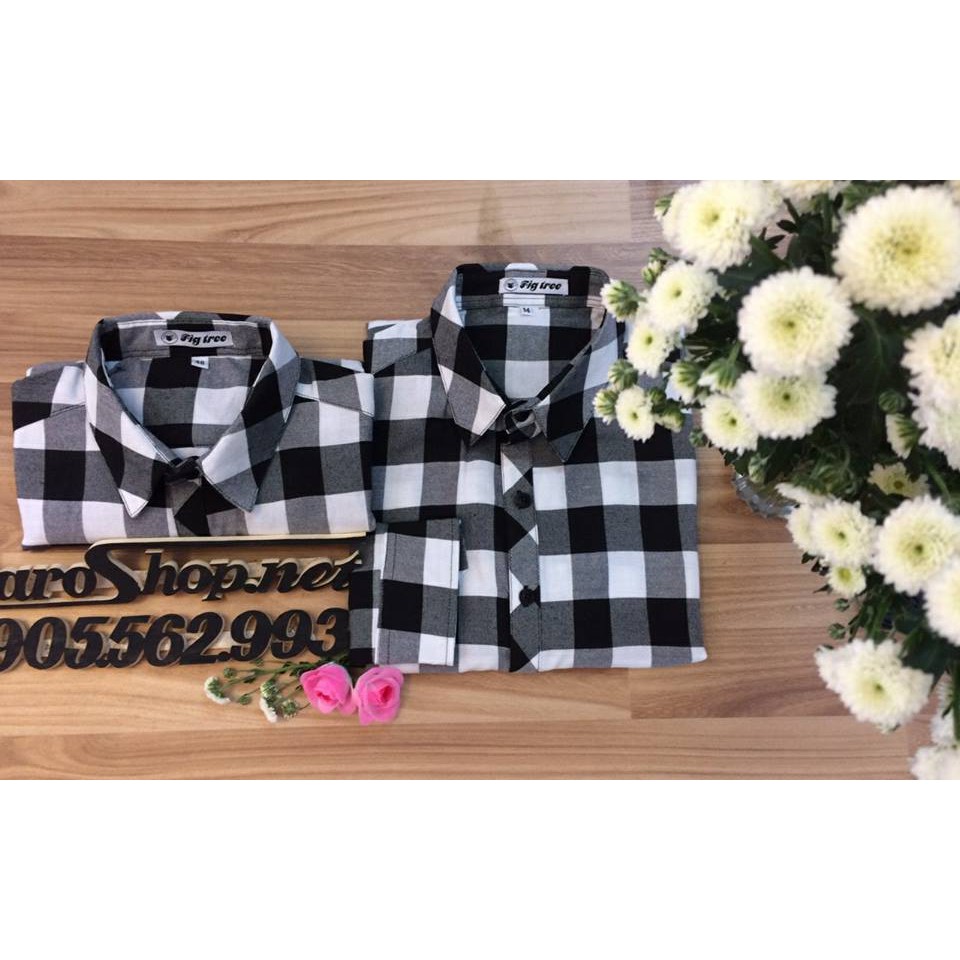Giới thiệu Áo đôi sơ mi mới về siêu hot caro trắng đen 122B