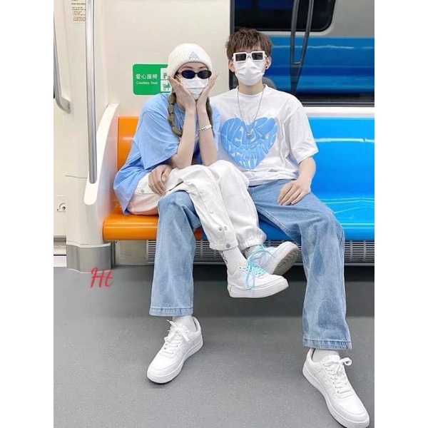 Thời Trang Nữ > Bộ > Bộ đồ đôi || Áo đôi tim xanh trắng HT11