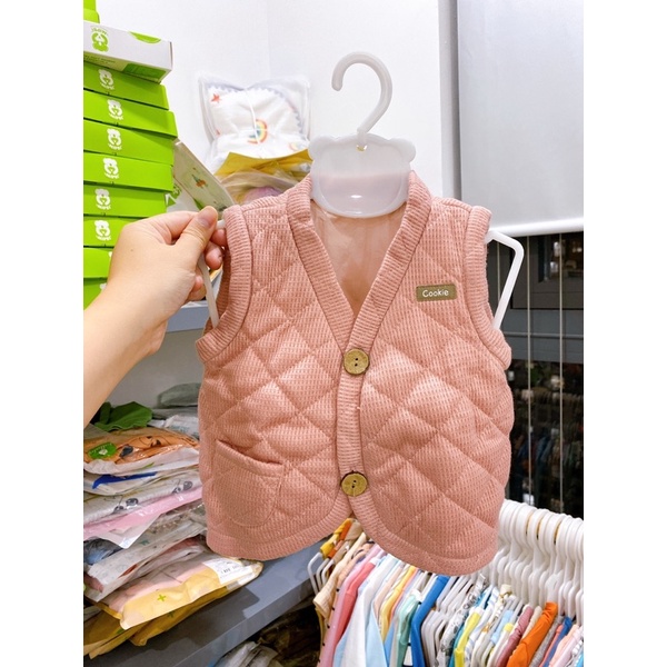 Giới thiệu Áo gile cài khuy giữa vải waffle trần bông dày dặn Cookie