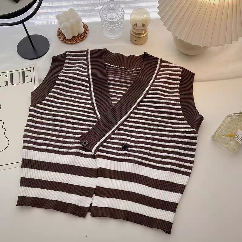 Giới thiệu Áo gile len mỏng kẻ ngang cổ V - Áo len dệt kim Quảng Châu
