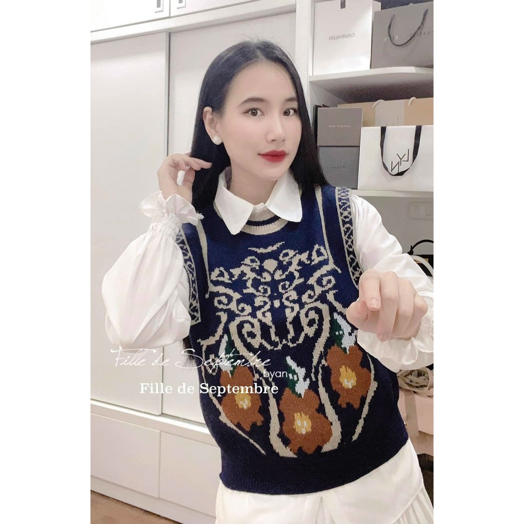 Giới thiệu Áo gile len nữ thổ cẩm màu trắng xanh be phong cách ulzzang hàn quốc thời trang yolo fashion