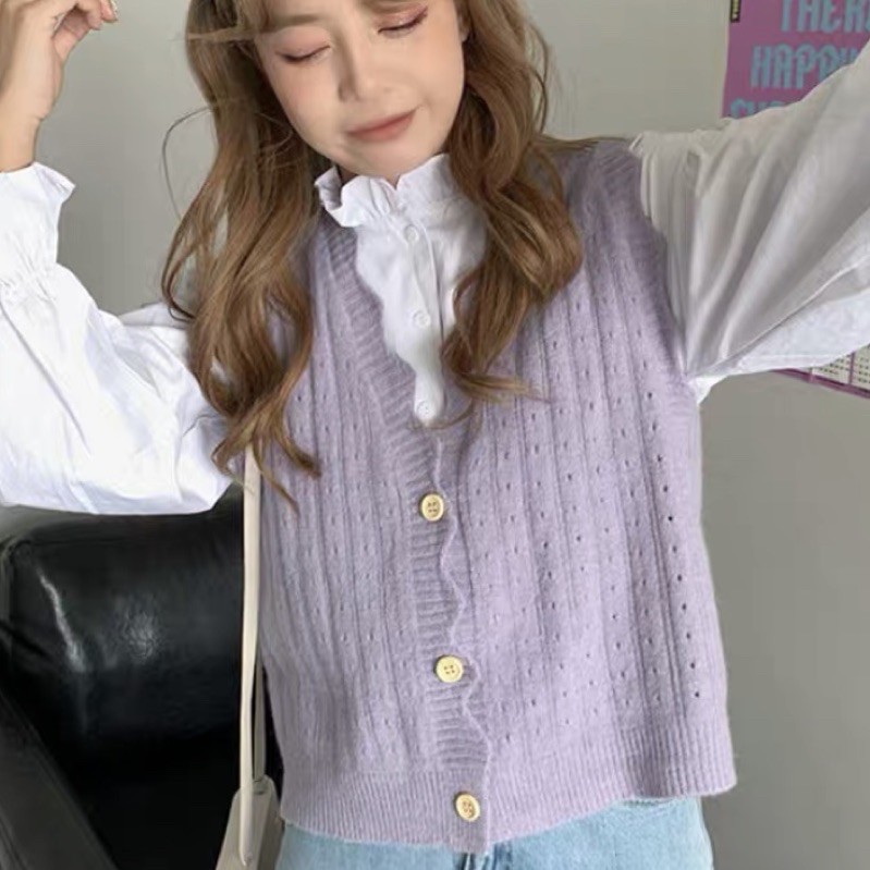 Áo gile len xốp (loại 1) viền lượn sóng cài cúc Ulzzang style Hàng Quảng Châu
