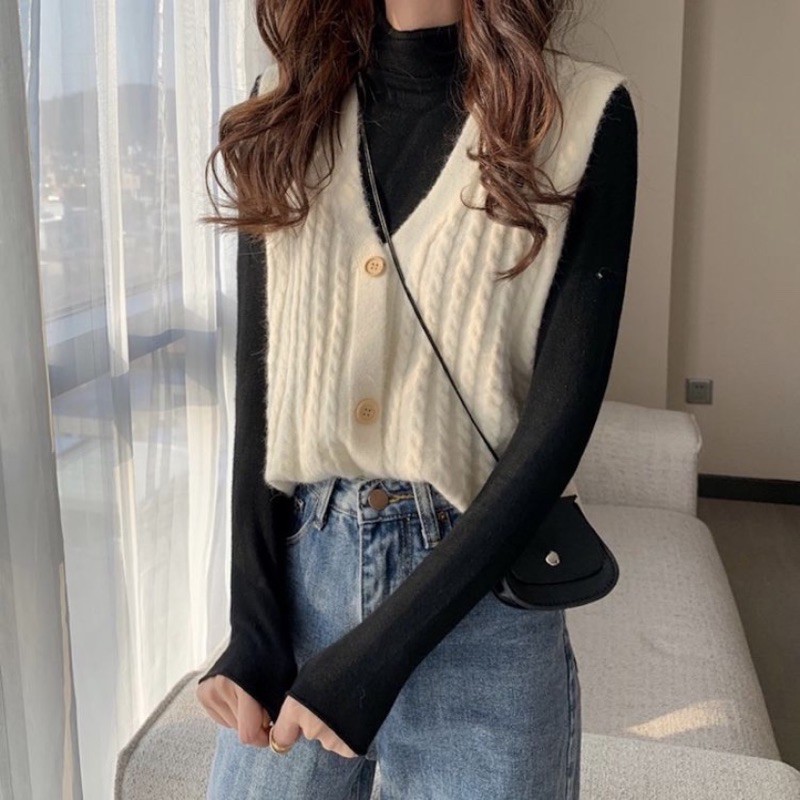 Áo gile len xốp văn thừng đóng cúc Ulzzang style  Hàng Quảng Châu