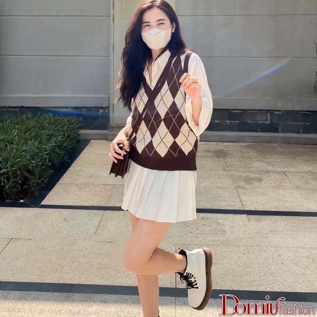 Giới thiệu Áo gile nữ Domiu chất len dày dặn họa tiết caro phong cách Ulzzang siêu xinh - Len05