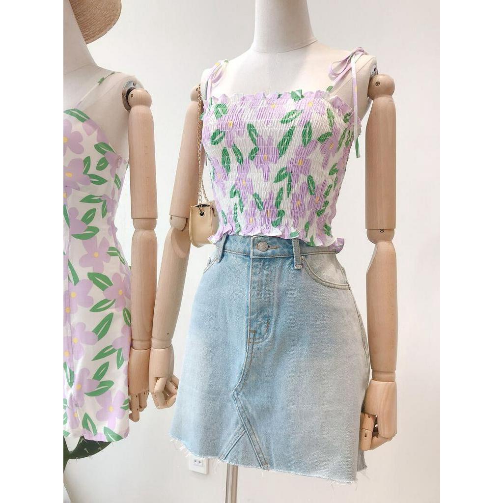 1. Mô tả: Áo 2 dây cột vai, bo chỉ 2. Chất liệu: Lụa cotton 3. Kích thước: Freesize 4. Màu sắc: Hoa tím/ Hoa Trắng