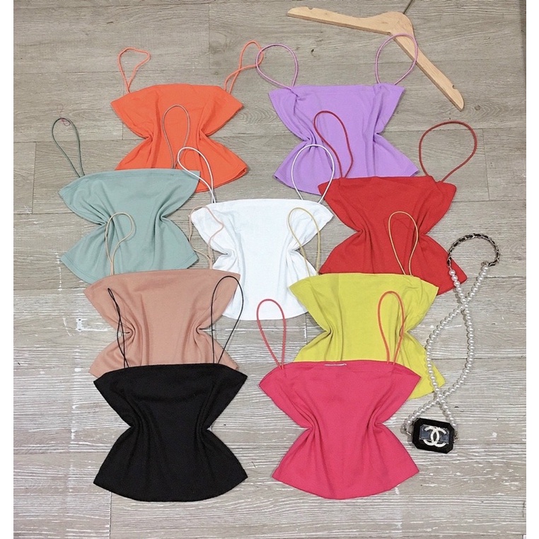 Giới thiệu Áo hai dây croptop sợi mảnh chất thun gân son co giãn TRẮNG - ĐEN // Thiên yết