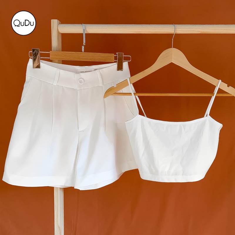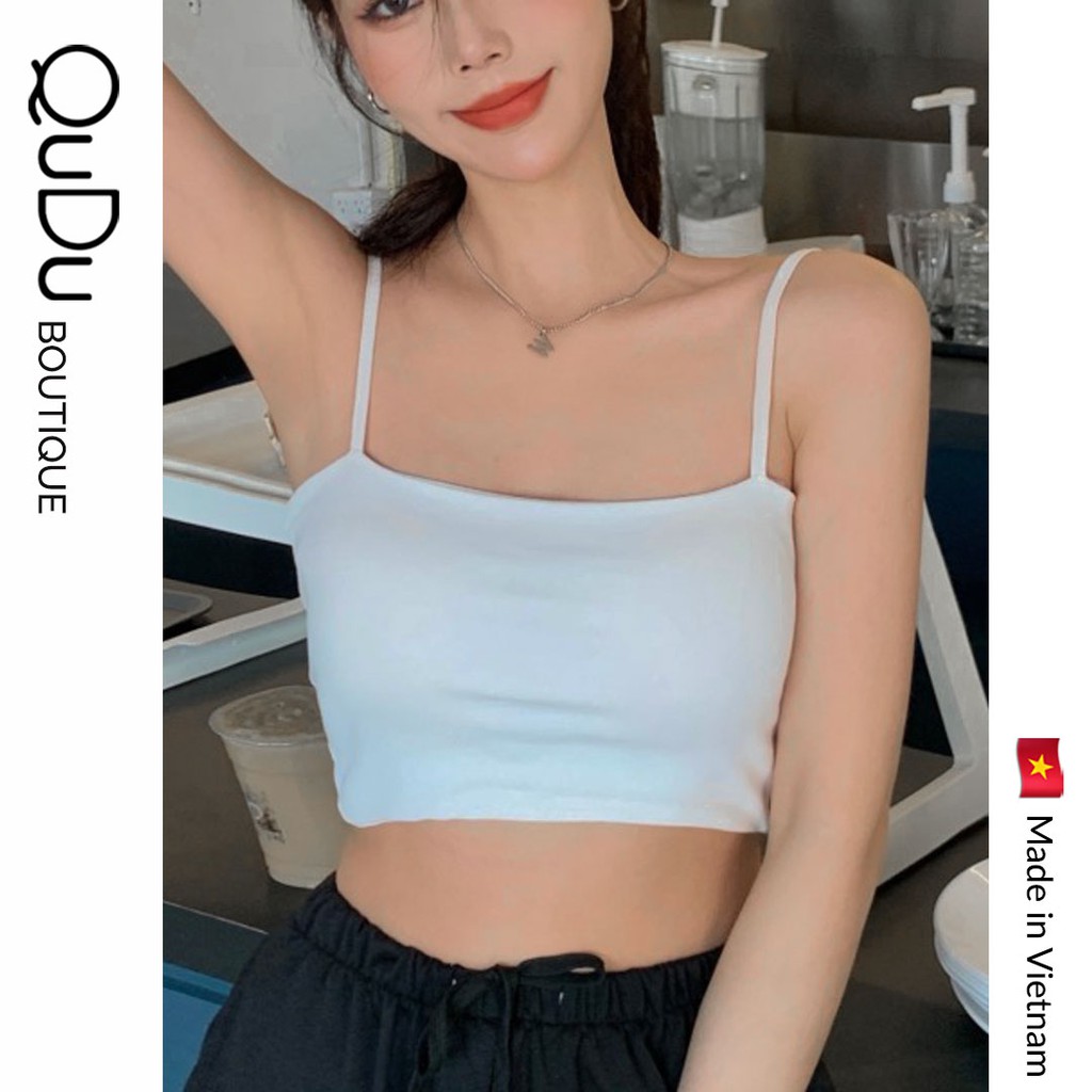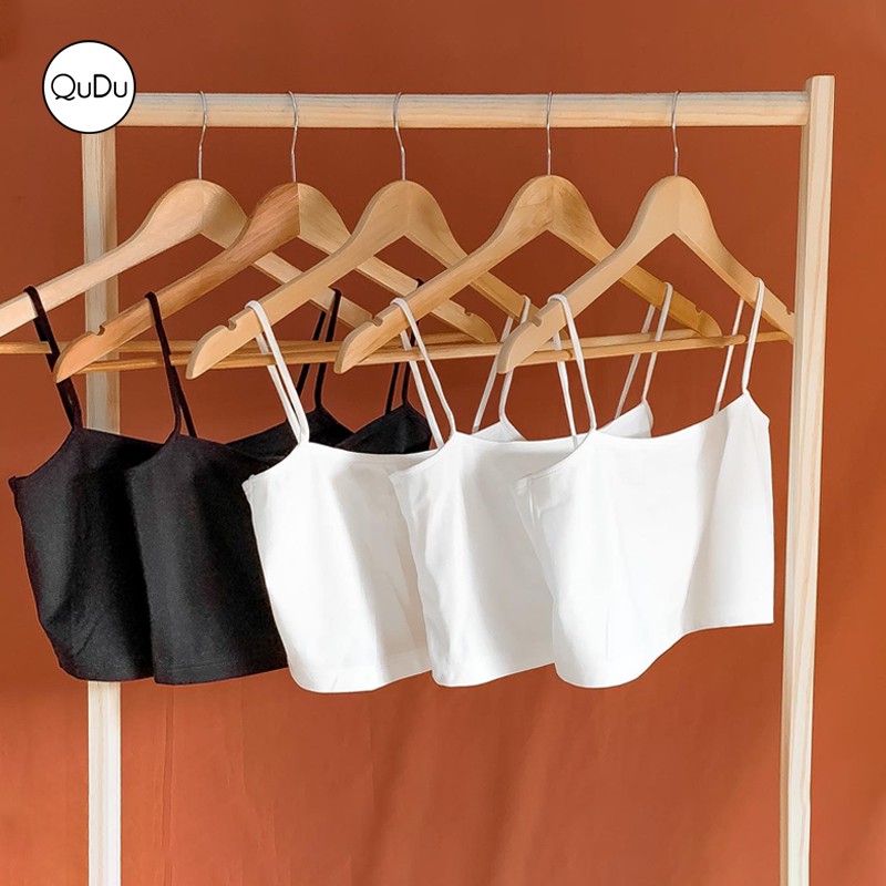 [Áo Hè 2021] Áo Hai Dây Nữ QuDu Màu Trắng Đen, Áo CropTop Thun Co Dãn Bốn Chiều Cực Tốt Thiết Kế Cho Mùa Hè
