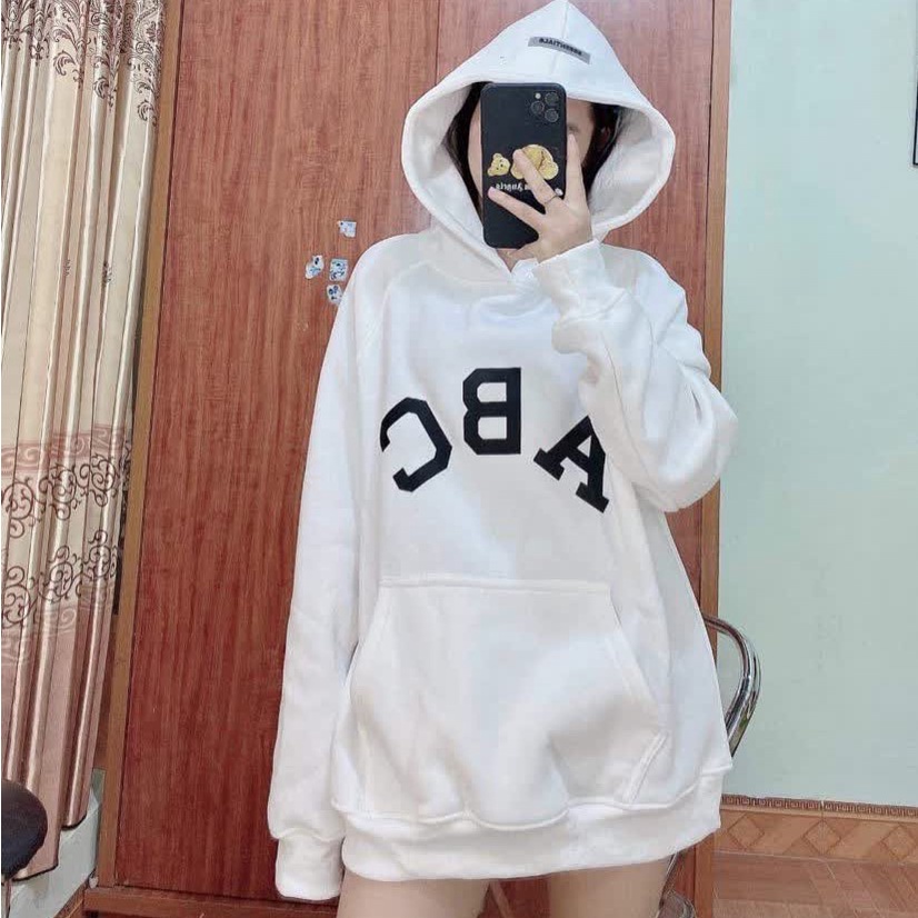 Áo HODIE UNISEX 3D ABC màu trắng ngà trẻ trung năng động