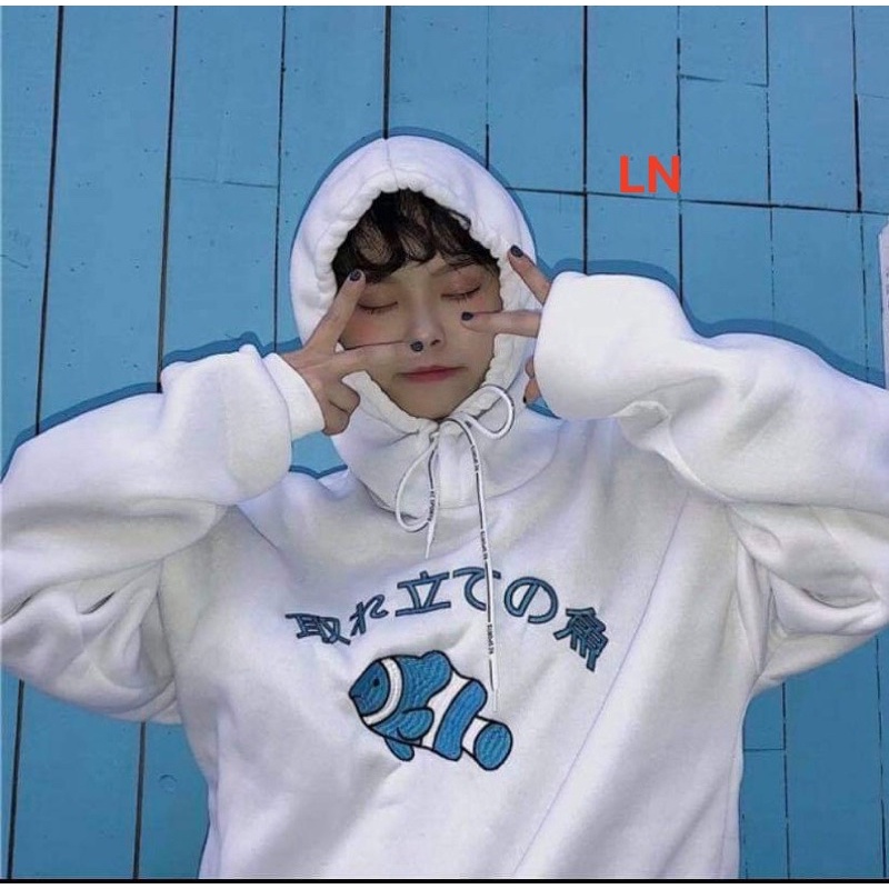 Thời Trang Nữ > Hoodie và Áo nỉ > Áo hoodies || Áo hoodie cá xanh chữ tàu TH6
